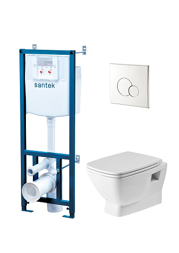 Комплект унитаза с инсталляцией Нео глубина унитаза 50см, клавиша хром глянец, с микролифтом, безободковый, быстросъемное