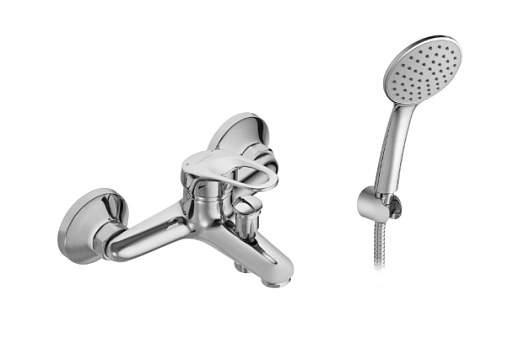 - Смеситель в сборе, ручной душ, шланг, настенный держатель, монтажный комплект, инструкция, гарантийный талон.