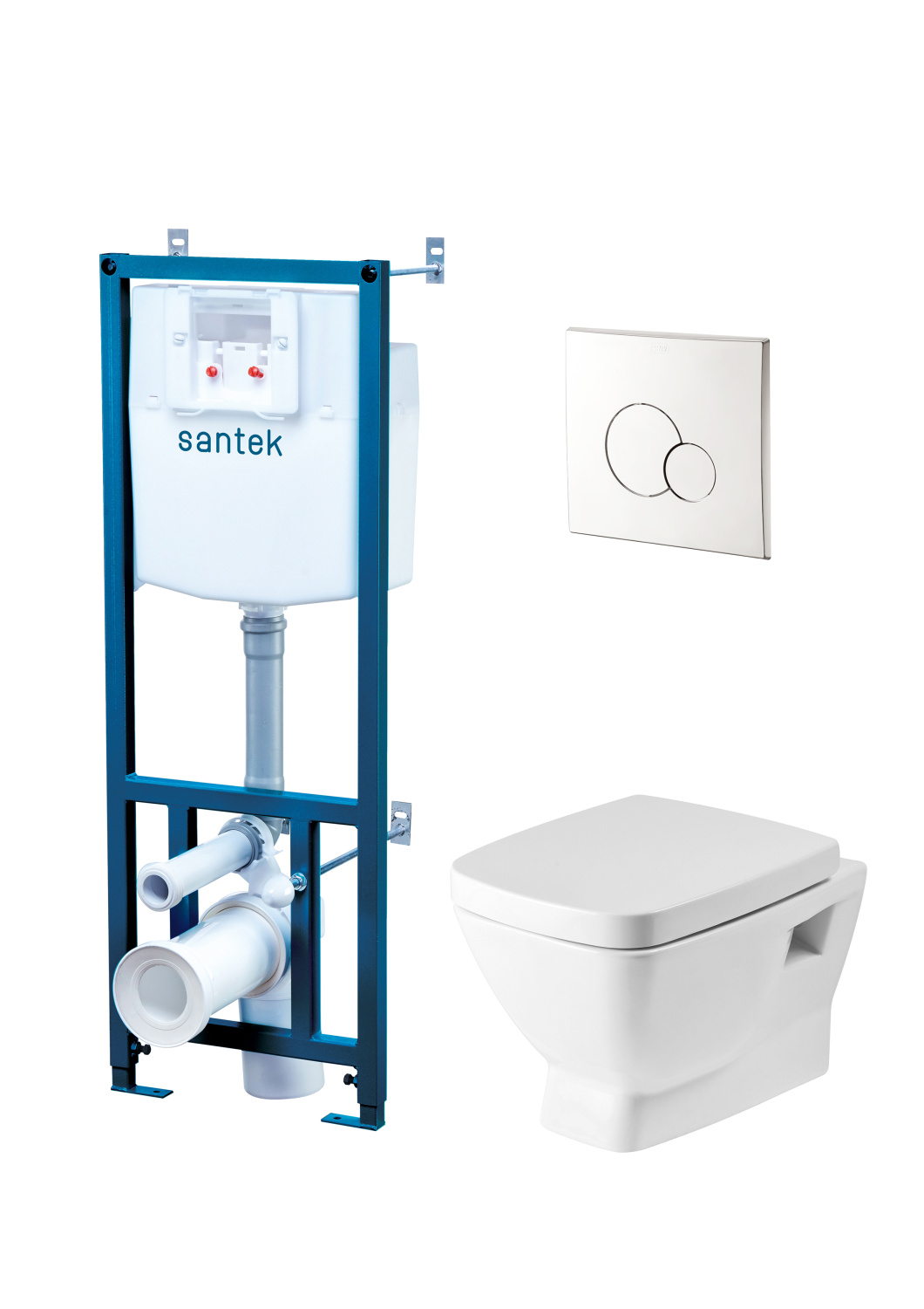 Нео 35х50см, комплект с инсталляцией, с микролифтом, быстросъемное, унитаз+инсталляция+сиденье+панель хром, арт. 1WH501543, Santek