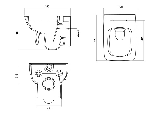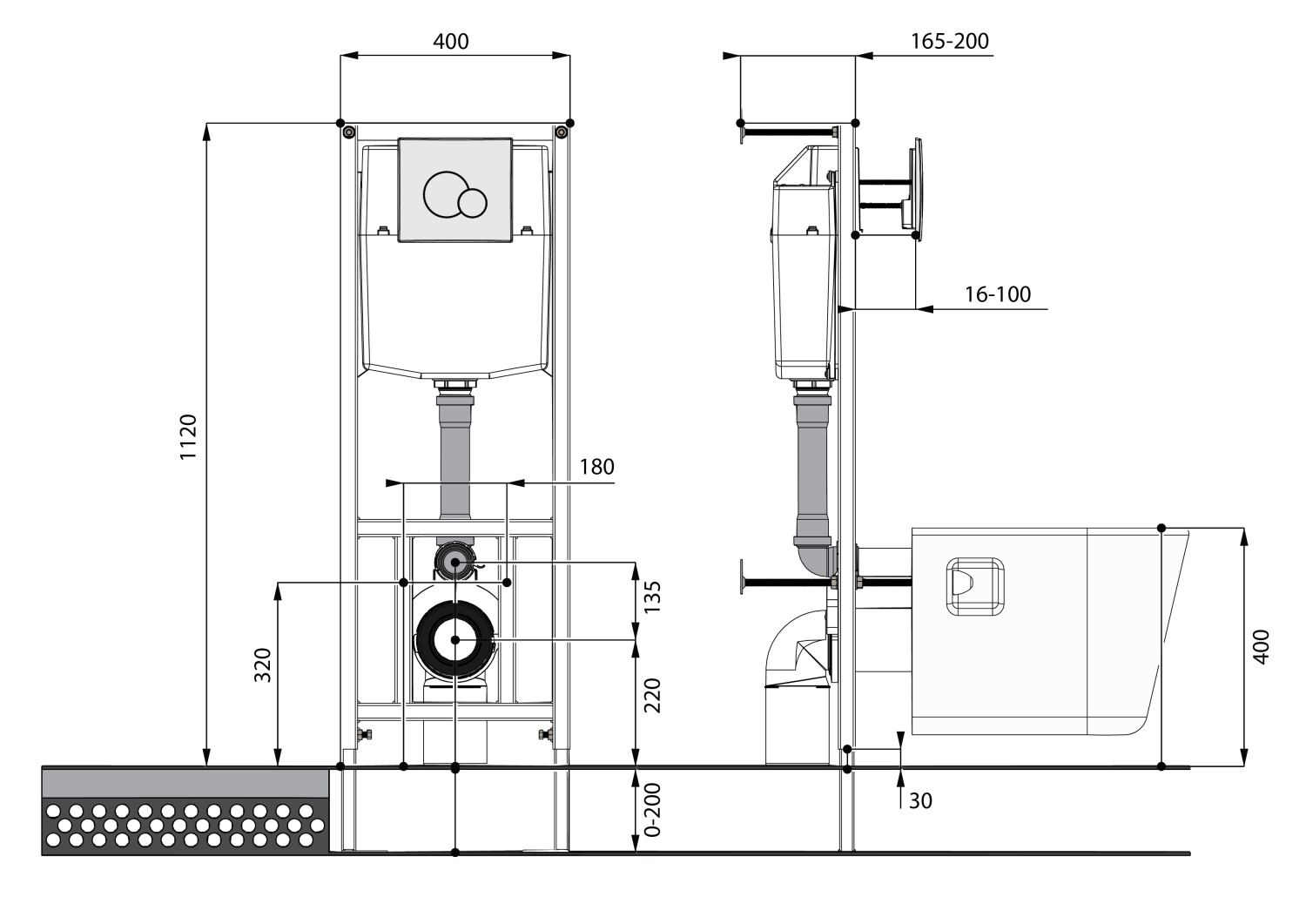 • Инсталляционная система; Подвесной унитаз; Сиденье; Панель смыва черная. Размер упаковки с инсталляцией : 1125 х 430 х 180. Размер упаковки чаша +сиденье : 435 х 403 х 584