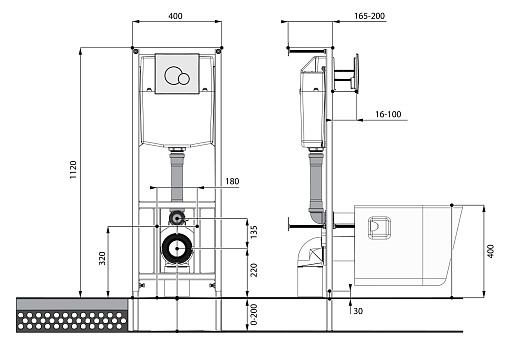 1.WH50.1.777 PACK "Нео rimless" - Подвесная безободковая чаша "Нео rimless" - Тонкая быстросъемная крышка с плавным опусканием - Система инсталляции - Черная кнопка двойного смыва. Инсталляция : - Надежность: Высоко прочная рама из металла, защищенная от коррозии. Выдерживает до 400 кг; - Двухрежимный сливной механизм. Панель с 2 режимами регулирует расход воды: 6 литров в обычном режиме и 3 литра в экономичном; - Бесшумность: Звук залива воды в бачок практически незаметен; - Легкость в уходе: Пластиковая панель смыва защищена от перепадов влажности и температуры. Преимущества: - Надежный дизайн рамы с нагрузкой до 400 кг; - Доступ к механизмам: легкое снятие панели смыва; - Монтажная скоба: надежное крепление к стене; - Заливной механизм: уровень шума не более 50 дБ; - Сливной механизм: клапан рассчитан на 150,000 циклов; - Подключение воды: сверху справа / слева; - По умолчанию объем смыва установлен на 6 и 3 литра; - Для чаш с крепежным расстоянием 180 мм; - Бак: с шумоизоляцией и защитой от конденсата; - Надежный дизайн рамы с нагрузкой до 400 кг; - Для чаш с крепежным расстоянием 180 мм; - Рама: стальной профиль 30x30 с антикоррозийным покрытием; - Надежный дизайн рамы с нагрузкой до 400 кг; - Для чаш с крепежным расстоянием 180 мм; - Сливное колено: диаметр сливного колена 180 мм,соответствующий российским стандартам; - Ножки: легкая настройка высоты в диапазоне 0-200 мм. Размер упаковки с инсталляцией : 1125 х 430 х 180 Размер упаковки чаша +сиденье : 435 х 403 х 584
